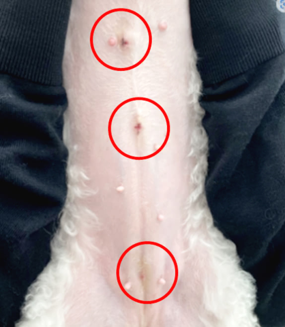 傷穴は3-10mmと小さく、開腹手術に比べて小さな傷で痛みが少ないため回復が早く、動物たちへの負担を最小限に抑えることができます。